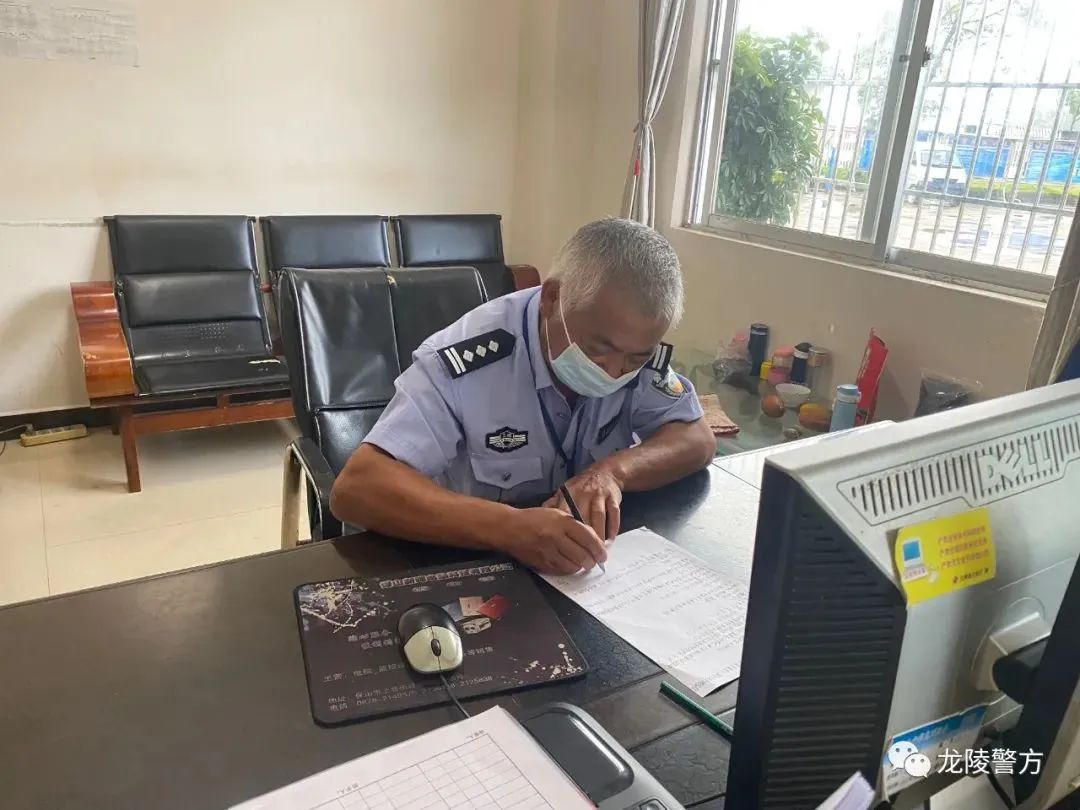 头发雪白,热爱公安工作,热爱警察职业,工作起来严肃认真,1981年10月在昆明军区炮兵靶场服役的庄春永,转业后来到龙陵县公安局内保科,先后在天宁派出所、龙新派出所、平达派出所、龙陵县拘留所、龙陵县看守所等岗位任职,40多年的从军从警经历体现出一名老同志的勤勉敬业、责任担当。