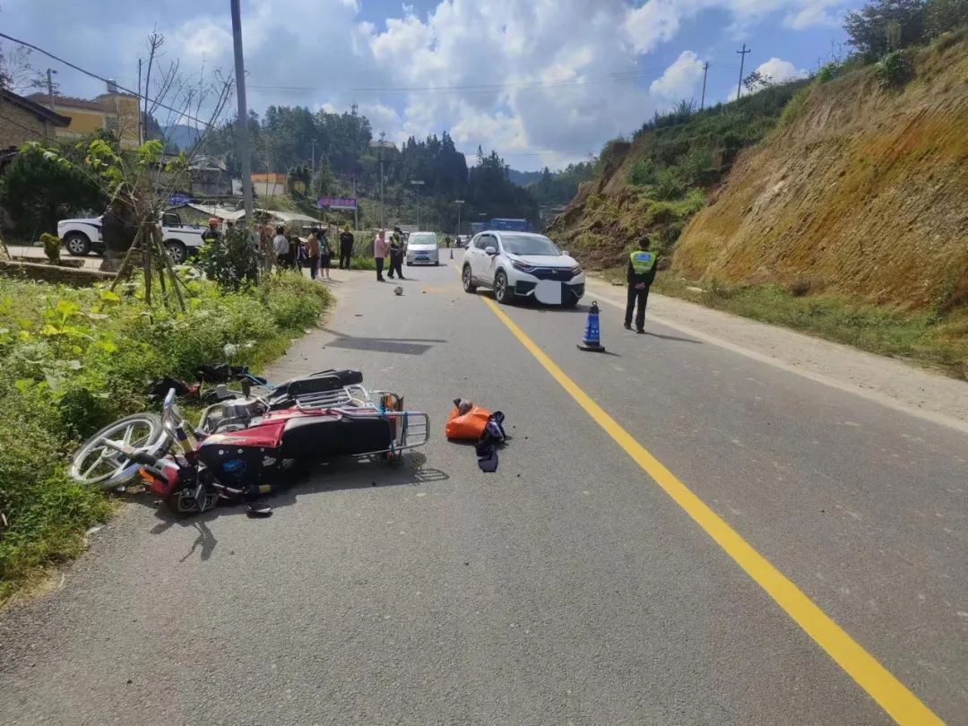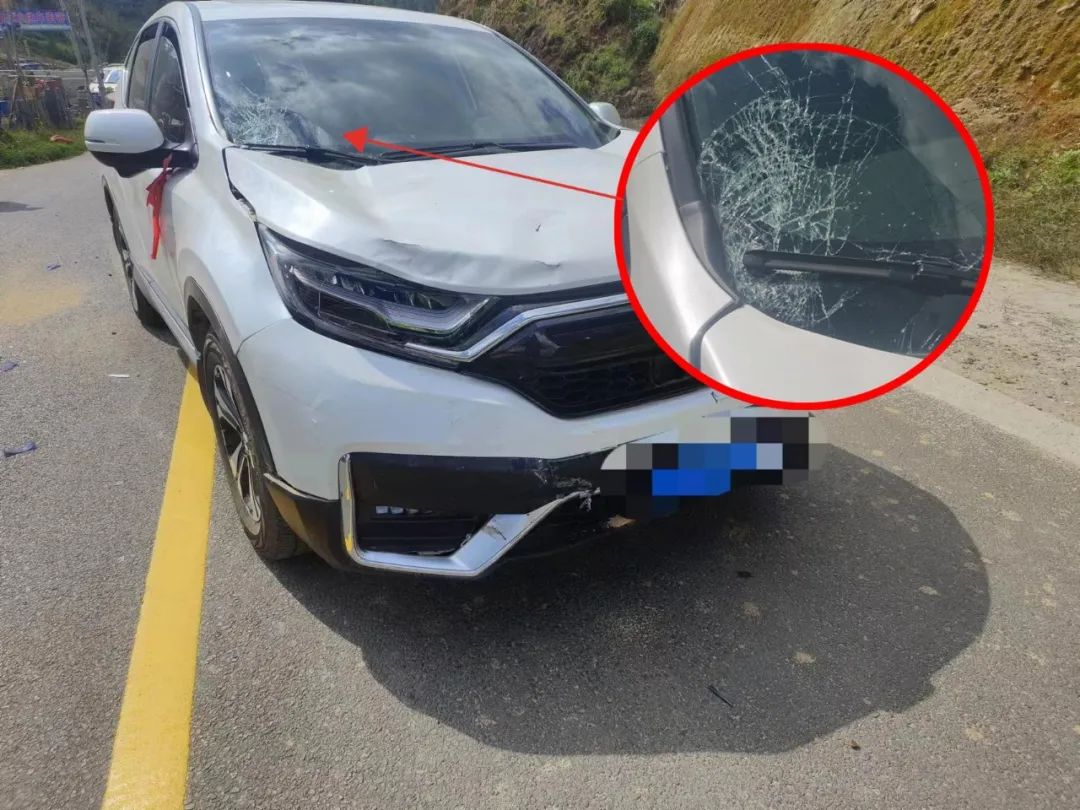 事发后,龙陵交警城区中队民警迅速赶到现场进行处理,并将事故受伤人员送医治疗,交警通过调看路口监控和小车的行车记录仪发现:事发时,摩托车被撞击倒地,摩托车上人员当场被撞飞出去,摔在地上,摩托车零件散落满地,白色小车右前车头被撞变形,有轻微凹陷,右前挡风玻璃碎裂。所幸邵某和杨某都佩戴了安全头盔,撞击发生时很好的减缓了邵某头部与小车前玻璃的撞击伤害。目前事故案件正按程序在依法办理中。