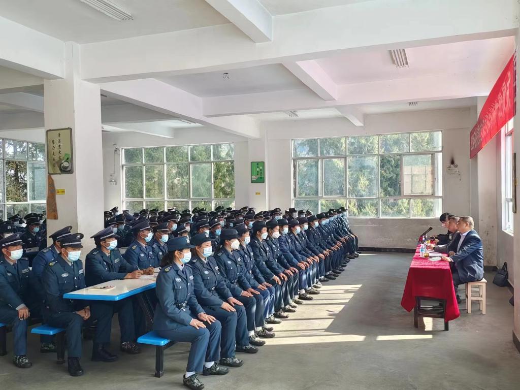 为扎实抓好全县2023年春季学期开学校园安全保卫工作,1月30日,龙陵县公安局联合县教育体育局组织对全县校园专职保安人员进行专业培训和实操演练暨龙陵县群防群治“雨城义警”启动仪式。