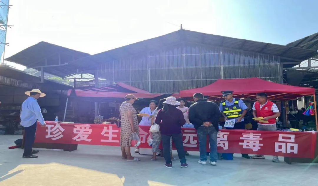 为进一步强化毒品预防宣传教育,抓好重要节点、特殊人群、重点场所宣传教育,构筑无处不在、声势浩大的禁毒宣传,增强人民群众对毒品的警惕性。6月5日,腊勐派出所联合镇有关部门及禁毒志愿者组织到腊勐街农贸市场开展以“珍惜生命,远离毒品”为主题的禁毒宣传活动。