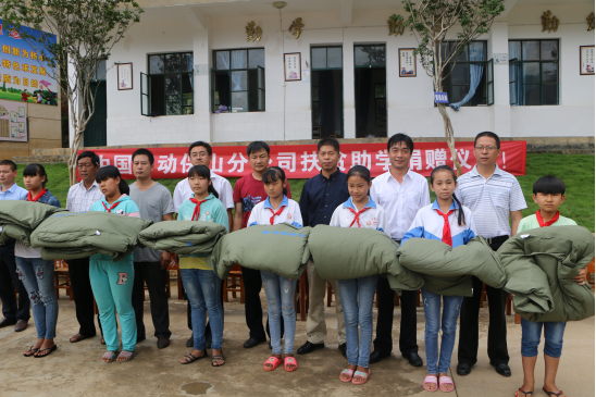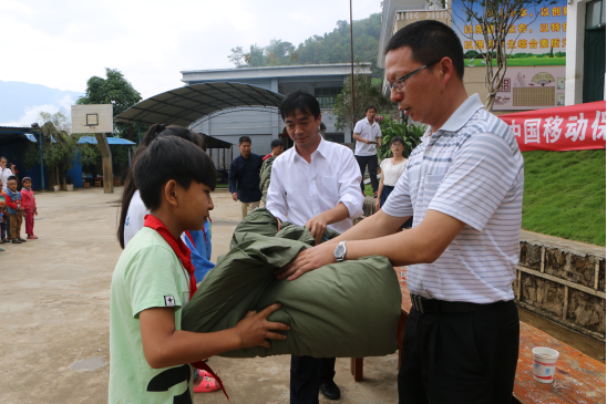 当日,民政局、移动公司和教育局领导一同为该校发放了133张爱心棉被,给该校师生欢度“六一”儿童节带去了特殊的礼物。