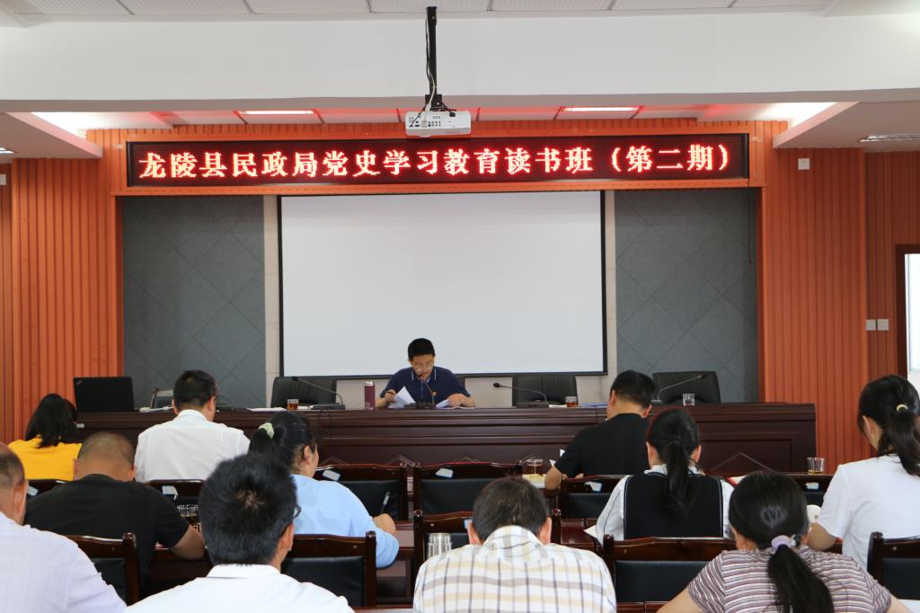 6月2日,龙陵县民政局开展党史学习教育第二次专题学习培训暨读书班,全体党员干部职工参加。本期读书班采取“集中学习+专题党课+电影党课+集体讨论”的方式进行。