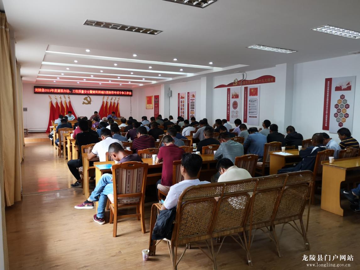 龙陵县建设工程质量安全监督站站长梅自霖同志通报了2018年度及2019年一季度全省房屋和市政工程领域安全生产事故情况和我县2018年房屋和市政工程质量安全生产工作情况,并对建设、施工、监理、检测等参建各方责任主体在工程建设过程中存在的主要问题进行了通报。紧接着,梅自霖同志就当前质量安全及扫黑除恶工作进行了详细安排、部署,要求各建筑施工、监理及房地产开发企业严格按照今年各项工作目标、任务认真开展安全工程三年行动、工程质量安全提升行动、查大风险防大事故百日行动、安全生产大检查行动、汛期安全生产工作、“安全月”“质量月”活动、危大工程管理,及扫黑除恶等工作。