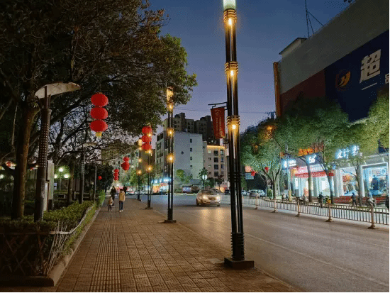 当夜幕缓缓落下,华灯相继绽放光芒,龙陵县城的道路两旁,色彩斑斓且绚丽多姿的景观,如同一支灵动的画笔,精心勾勒出一幅美轮美奂的多彩画卷。