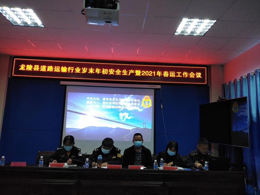 1月22日下午,龙陵县组织召开道路运输行业岁末年初安全生产暨春运工作会议,交警大队、交通运输局、应急管理局领导及辖区各道路运输企业(客运、货运、公交、出租、检测、驾培机构、二类维修、物流)负责人参会。