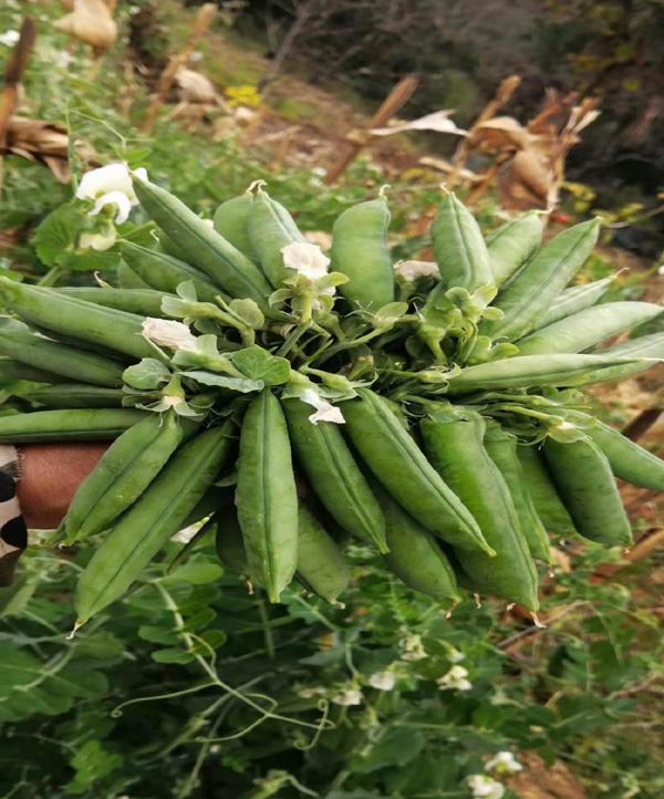 2020年县农业农村局在资金紧缺情况下,多方筹措资金22万购买豆种无偿提供给农户,共计种植青豌豆1200余亩,户均2.2亩,9月初种植,因2020年10月降雨较大,苗期受雨水淋湿,死苗现象突出、病虫害严重,农业农村局驻村工作队和农业技术推广中心技术员及时赶到地块调查,提出了防治技术措施,并对农户现场技术培训。青豌豆通过肥水管理和病虫害防治,豆荚长得饱满,结荚多,于11月底陆续上市,售价在4-6元/公斤,目前销售已接近尾声,综合亩产值达2000余元,全村实现产值240万元,覆盖建档立卡贫困户140户,户均增收3197 元。