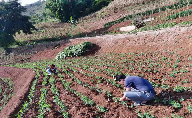 龙陵县农业农村局挂钩扶贫村——碧寨乡三家村,三家村海拔1200-1750米。有国土面积29.8平方公里,耕地面积2800亩,山高坡陡,地块分散,雨量充沛,气候呈立体分布,适合多种农作物生长。全村居民居住分散,辖10个自然村19个村民小组,546户2378人,建档立卡户217户。属于典型山区贫困村。三家村主要产业有核桃、茶叶、甘蔗、香料烟、青豌豆、生猪、黄山羊、肉牛。2020年实现农村经济总收入4279.8 万元,实现农民人均可支配收入11657元。