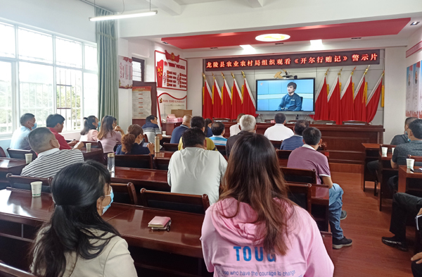 8月9日上午,龙陵县农业农村局在周一集中学习会上组织观看了由省纪委省监委同云南广播电视台拍摄制作的《开尔行贿记》警示片。局班子成员、各股室、各二级单位负责人共计60余人参加观看。