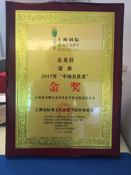 图二:龙陵松山红产品“金龙眉”茶获奖证书