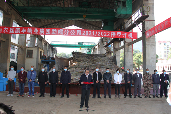 1月16日,龙陵县康丰糖业勐糯分公司举行2021/2022榨季开机仪式。云南省糖业协会理事长邓毅出席开机仪式并宣布开机生产。