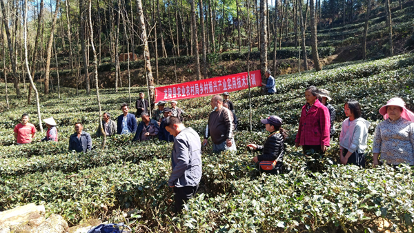 本次培训采用了现场观摩的方式,重点围绕茶叶高产栽培的注意事项、栽培要点、管理要点和相关技术、稳产增收、农业安全生产知识等方面知识进行培训。所教课程内容丰富,通俗易懂,现场老师讲解认真,培训学员听讲仔细,整个培训班学习氛围积极。