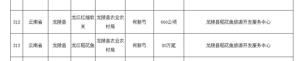 近日,农业农村部质量安全中心公布了“2024年第一批全国名特优新农产品”名录,龙陵县“龙江红细软米”和“龙江稻花鱼”喜登2024年第一批全国名特优新农产品名录。