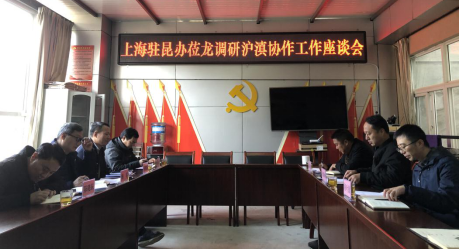 2021年1月14日,上海驻昆办援外服务处处长杨军、市政府副秘书长孙鸿宾一行4人莅龙进行沪滇协作工作调研,龙陵县委常委副县长徐颖峰、扶贫办副主任杨国林、联络专员何叶捷一同参与调研座谈会。