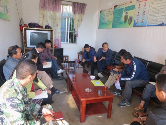党组书记、支部书记、主任毕红安(右二)深入挂钩点平达乡小河村共商党建与脱贫攻坚工作