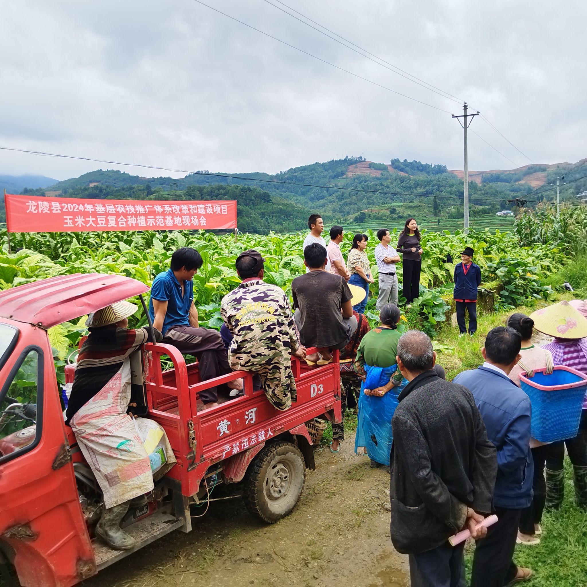 近日,龙陵县2024年基层农技推广改革和建设项目玉米大豆复合种植示范基地在龙新乡绕廊村召开现场培训会,基地内56户示范户参加了培训。