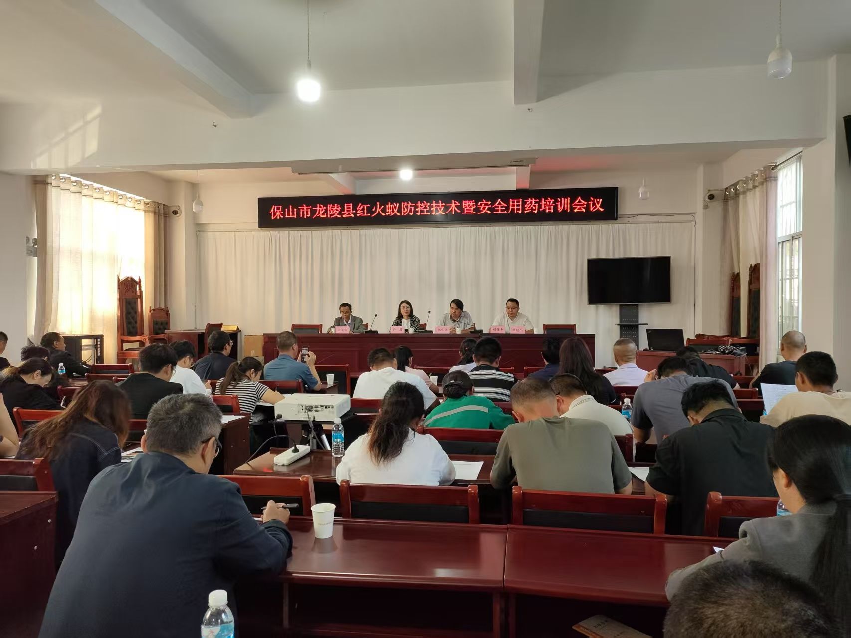 为有效遏制红火蚁蔓延,提升防控能力,6月12日,龙陵县组织召开2025年红火蚁防控技术培训暨现场观摩会议,各乡镇综合保障与技术服务中心、红火蚁发现村、县直有关单位、县种子植保土肥工作站工作人员等60余人参加培训。