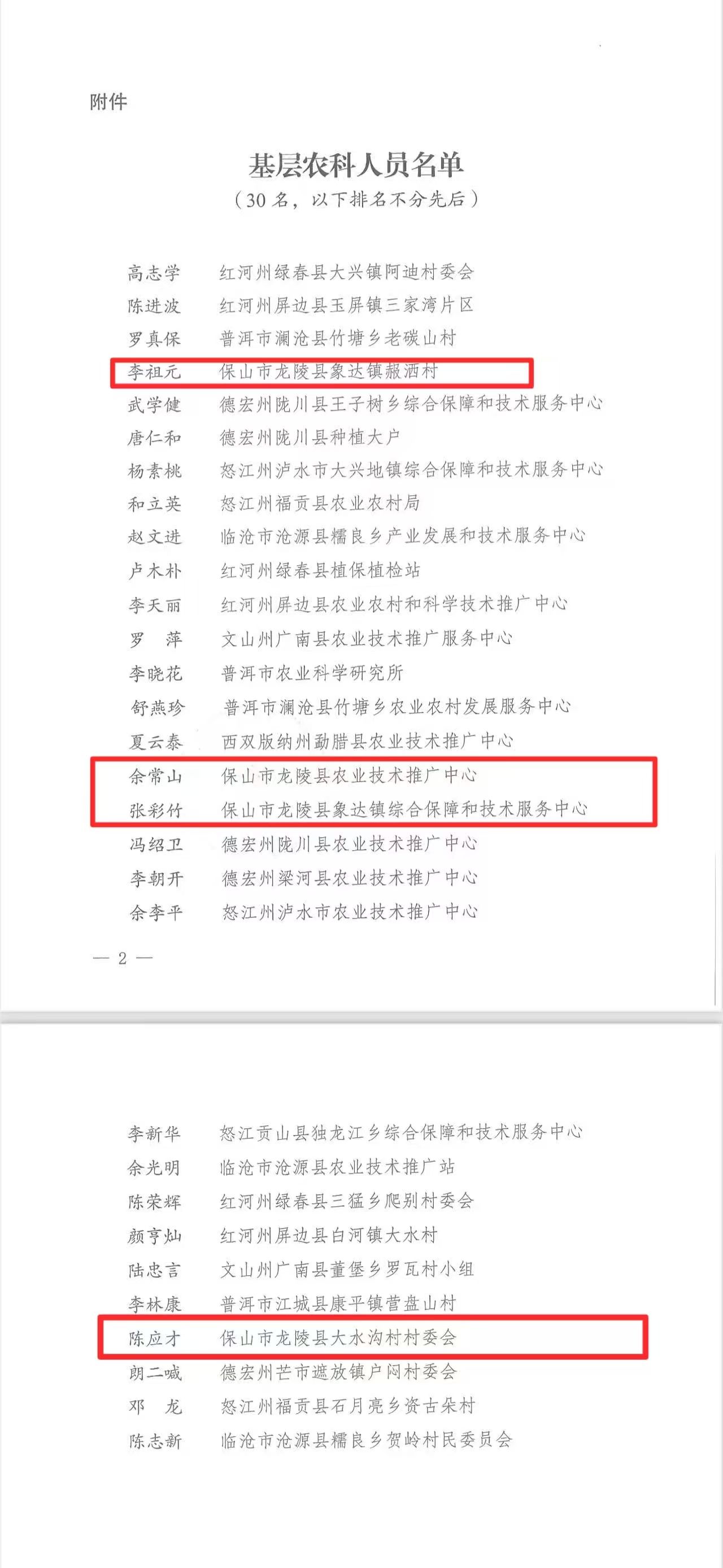 近日,云南省农业农村厅通报表扬2025年旱地优质稻基层农科人员,龙陵县4名农业从业者凭借在旱地优质稻产业发展中的出色表现成功入选,他们分别是龙陵县农业技术推广中心余常山、象达镇综合保障和技术服务中心张彩竹、镇安镇大水沟村党总支书记陈应才、赧洒八组小组长李祖元。