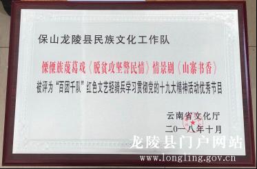 根据《关于评选“百团千队”红色文艺轻骑兵学习贯彻党的十九大精神活动优秀节目的通知》(云文艺〔2018〕10号)要求,云南省文化厅对2017年12月1日至2018年6月30日参加完成“百团千队”红色文艺轻骑兵学习贯彻党的十九大精神活动以及“文化大篷车·千乡万里行”惠民演出专项工作中的优秀作品进行了评选。此次评选共有195个节目,经组织专家评委进行审核,并报省厅党组会议同意,确定入选优秀文艺节目45个。龙陵县民族文化工作队编排的傈僳族蔑葛戏《脱贫攻坚警民情》、情景剧《山寨书香》脱颖而出,入选优秀文艺作品名单。