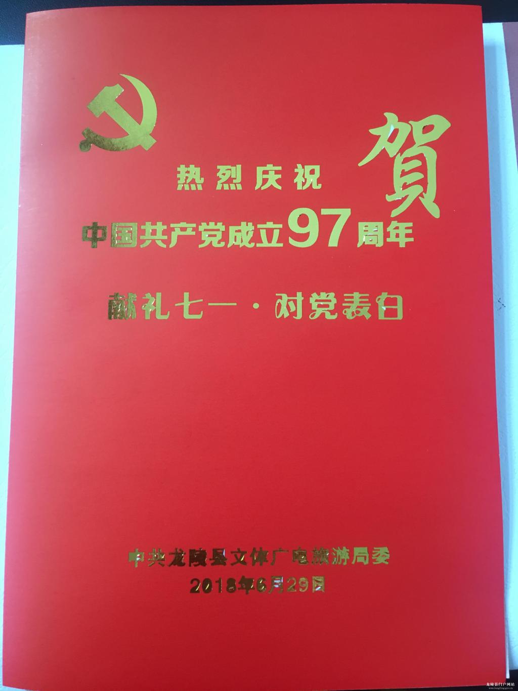 为庆祝中国共产党成立97周年,进一步增强各党支部创造力、凝聚力和战斗力,6月29日,中共龙陵县文体广电旅游局委组织召开庆祝建党97周年活动,由局党委书记、局长郑亮明同志主持,全体党员干部参加此次会议。