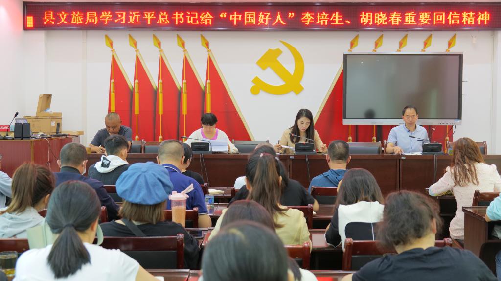 9月26日上午,县文化和旅游局召开干部职工会议,专题学习习近平总书记给“中国好人”李培生、胡晓春重要回信精神。