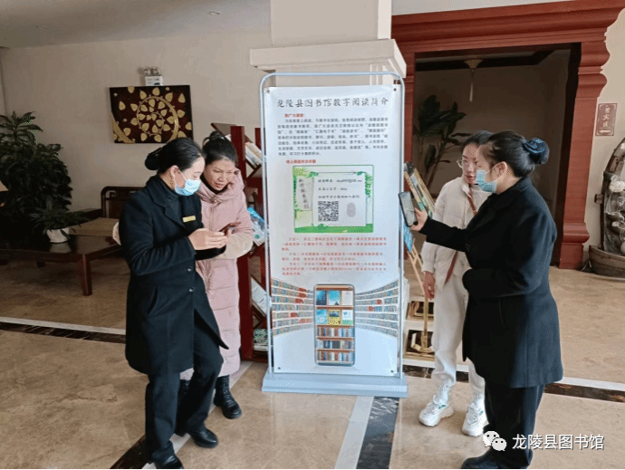 2023年12月28日龙陵县图书馆到松山旅游景区、镇安镇老梨树温泉、邦腊掌温泉酒店、香柏书院、黄龙玉博物馆推送图书馆微信公众号二维码共享小程序,请读者关注微信公众号“龙陵县图书馆”,在“微服务”“汇雅电子书”“超星读书”、“博看微刊”菜单栏分别呈现图书、期刊、讲座、绘本、听书”,图书呈现“成功励志、经典名著、小说传记、历史军事、亲子育儿、人生哲学、生活保健、文学艺术、政治法律、连环画、看展览”等数字资源。