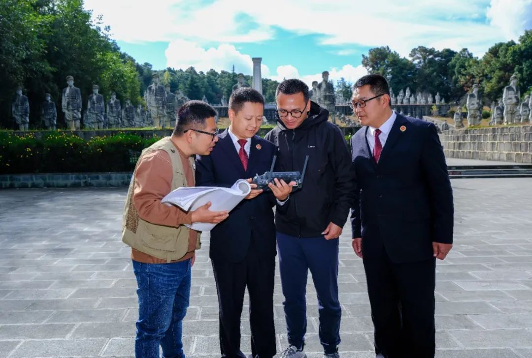 为确保“四普”复核工作高效推进及两处的数据采集效率和精度,龙陵县“四普”调查队向龙陵县人民检察院提出技术支持申请后,该院及时派遣掌握航测技术的文保检察官,并协调昆明南方潮科技公司派出专业技术人员,会同龙陵县“四普”调查队,携带具备激光雷达扫描功能的大疆RTK350无人机,前往两处文保单位开展了为期两天的测绘作业。