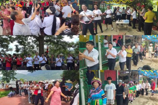 近日,龙陵县和镇康县以火把节为契机,在戍边馆、赐福彝寨旅游景区等边疆地标开展“欢乐交流·幸福同行”为主题的联谊活动。来自龙陵县的碧寨打歌队、平达打歌队、勐糯打歌队、象达打歌队与镇康县的老年协会打歌队、勐捧镇打歌队等300余名非遗传承人、打歌爱好者及边民群众通过“沉浸式”非遗互动,共同谱写边疆国门文化建设新篇章。