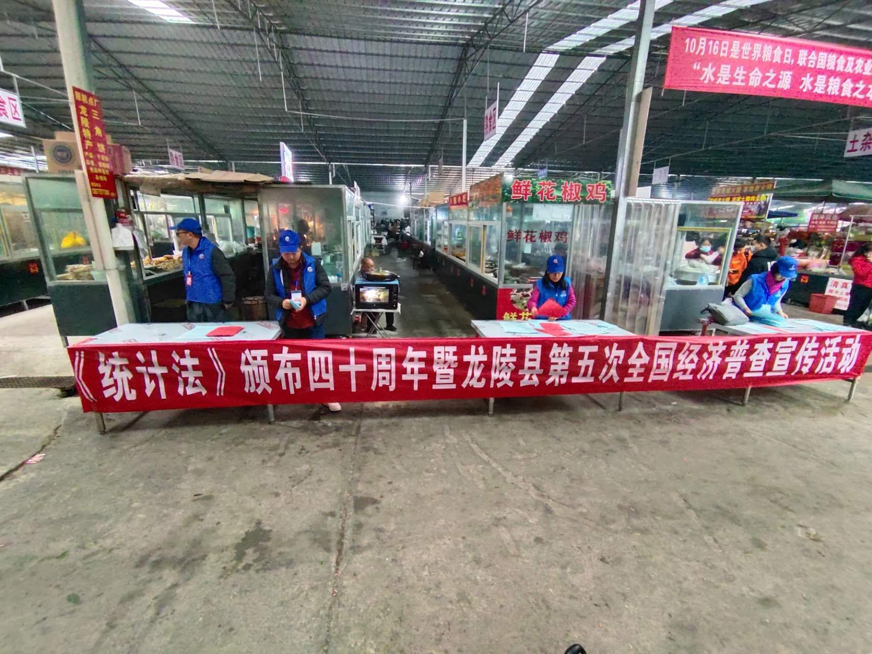 “您好,我们是龙陵县经济普查办公室工作人员,龙陵县全国第五次经济普查工作将于1月1日开始正式普查登记,这是致调查对象的一封信,请您看一看!”12月8日,正值《中华人民共和国统计法》颁布实施40周年,龙陵县统计局在农贸菜市场上设立“宣传摊位”,将《中华人民共和国统计法》及第五次经济普查宣传送到群众身边。