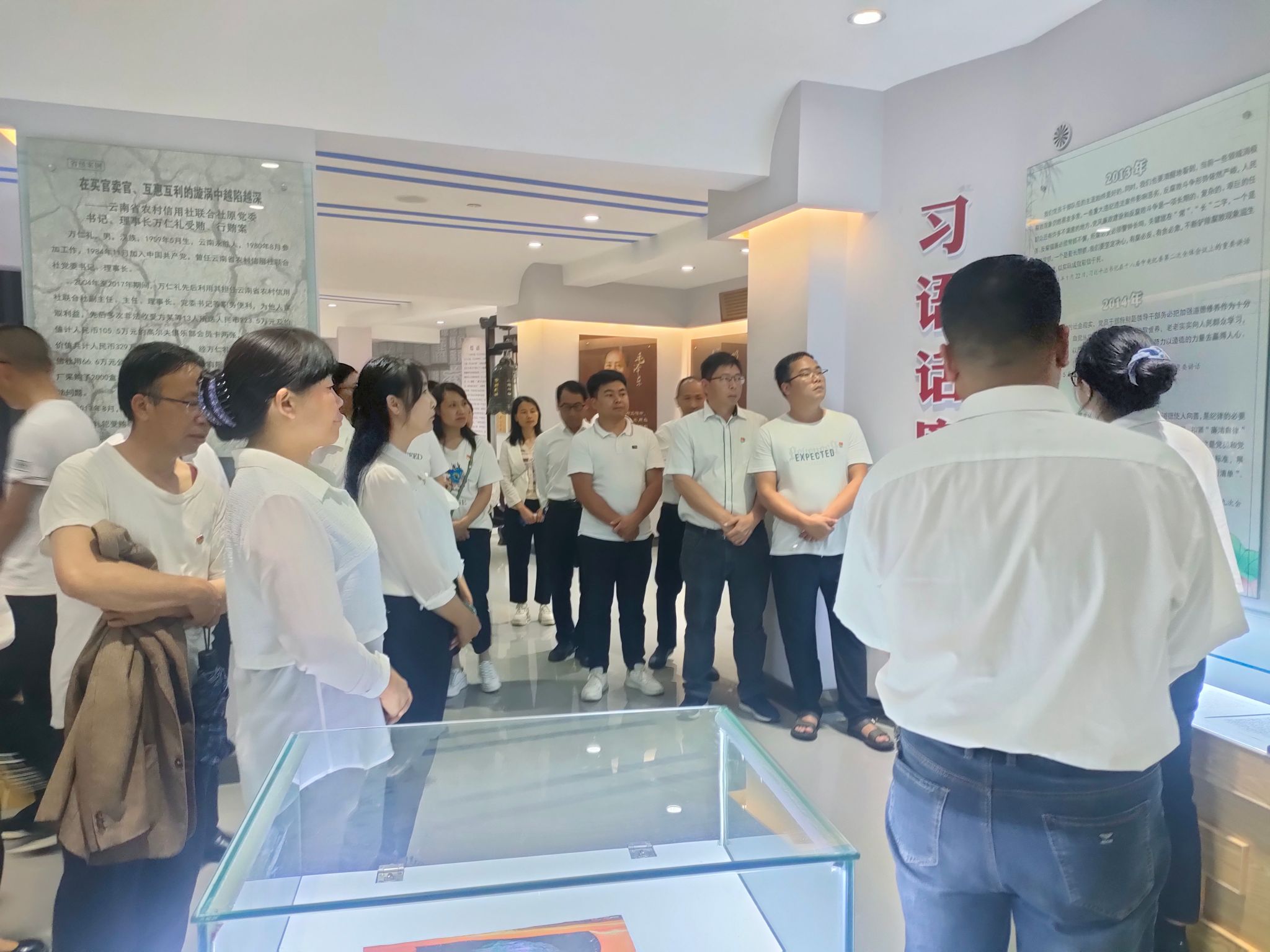 活动中,大家跟随讲解员的脚步,观看了违纪违法党员干部的警示案例,学习了毛泽东、习近平等领导人的红色家风,以及云岭楷模张桂梅、杨善洲等先进事迹。这些反腐的鲜活案例和榜样人物的先进事迹,既给大家敲响了守住廉洁底线的警钟,也激发了党员干部向榜样学习的热情。大家一致表示,要以正在开展的党纪学习教育为契机,自觉加强党性修养,坚定理想信念,时刻警醒自己“底线”不能越、“红线”不能踩、“高压线”不能碰,以案为戒、反躬自省、警钟长鸣,做到知敬畏、存戒惧、守底线,以优良的作风、严明的纪律、过硬的本领和更扎实的举措为统计工作高质量发展提供坚强保障。