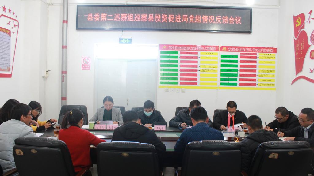 县委巡察办负责同志,县委第二巡察组有关同志,县纪委县监委组织部、第二纪检监察审查室、派驻县财政局纪检监察组负责同志,县委组织部干部监督股负责同志,县投资促进局党组领导班子成员出席会议;县投资促进局干部职工列席会议。