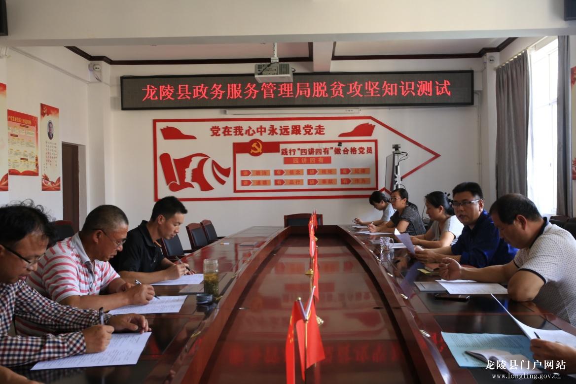 为打赢精准脱贫攻坚战,进一步加深政务服务管理局结对帮扶干部对扶贫政策的知晓度,提高开展脱贫攻坚工作的能力和水平,2018年6月8日下午,龙陵县政务服务管理局组织全体干部职工进行了脱贫攻坚政策知识测试。
