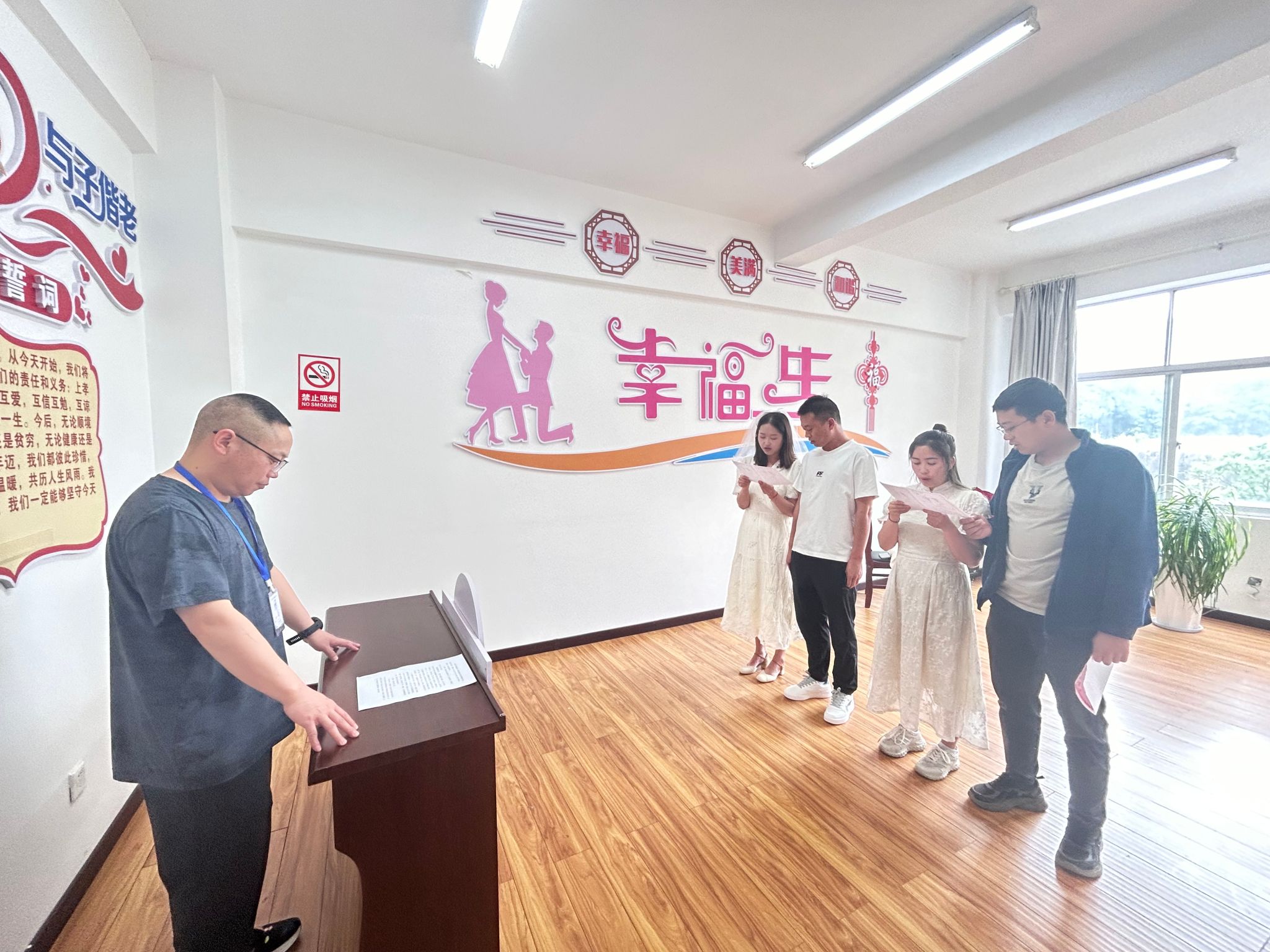 一是提前预约,错峰登记。准新人们通过“一部手机办事通”提前预约服务,合理安排登记时段,缩短现场等待时间。二是增加人员,提升效率。县民政局在婚姻登记服务窗口增加工作人员2名,进一步提升办事效率,让群众快办易办。三是省内通办,就近就便。自去年8月份开始,内地婚姻登记列入“省内通办”事项,当事人只需一方常住户口为云南省内居民,就可在省内任意县(市、区)欢迎登记机关办理内地居民结婚登记。四是延时办理,提升服务。婚姻登记服务窗口工作人员在5月20日和5月21日两天提供延时服务,提前半小时上班,延迟下班时间,确保新人都能在这两天顺利领证。五是便民服务,仪式感拉满。工作人员提前布置好颁证厅,领证新人可参加一对一的颁证仪式,为新人营造温馨浪漫的婚姻登记氛围。同时,邀请县妇幼保健院设置婚检咨询服务窗口,为前来登记的新人提供婚姻辅导、婚检接送服务,引导新人树立正确的爱情观、婚姻观、家庭观,倡导文明婚俗新风。