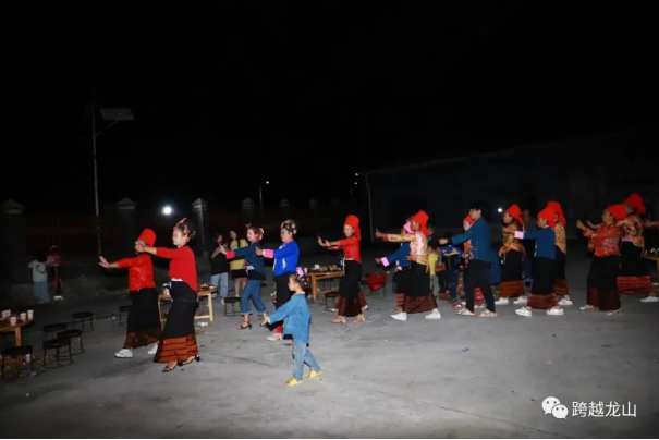 9月10日当天下午龙山镇芒麦村阿昌寨子一片热闹景象,由小组长、妇女之家共同组织开展“欢度中秋佳节,弘扬民族文化,促进民族团结”活动。寨子男女老少身着民族服装共同参与,在小组活动场所摆起“长龙”,各族群众围桌而坐,一起吃月饼、赏满月、话家常。吃完月饼就到了互动环节,大家山歌对唱、共跳“窝罗舞”,载歌载舞,其乐融融。