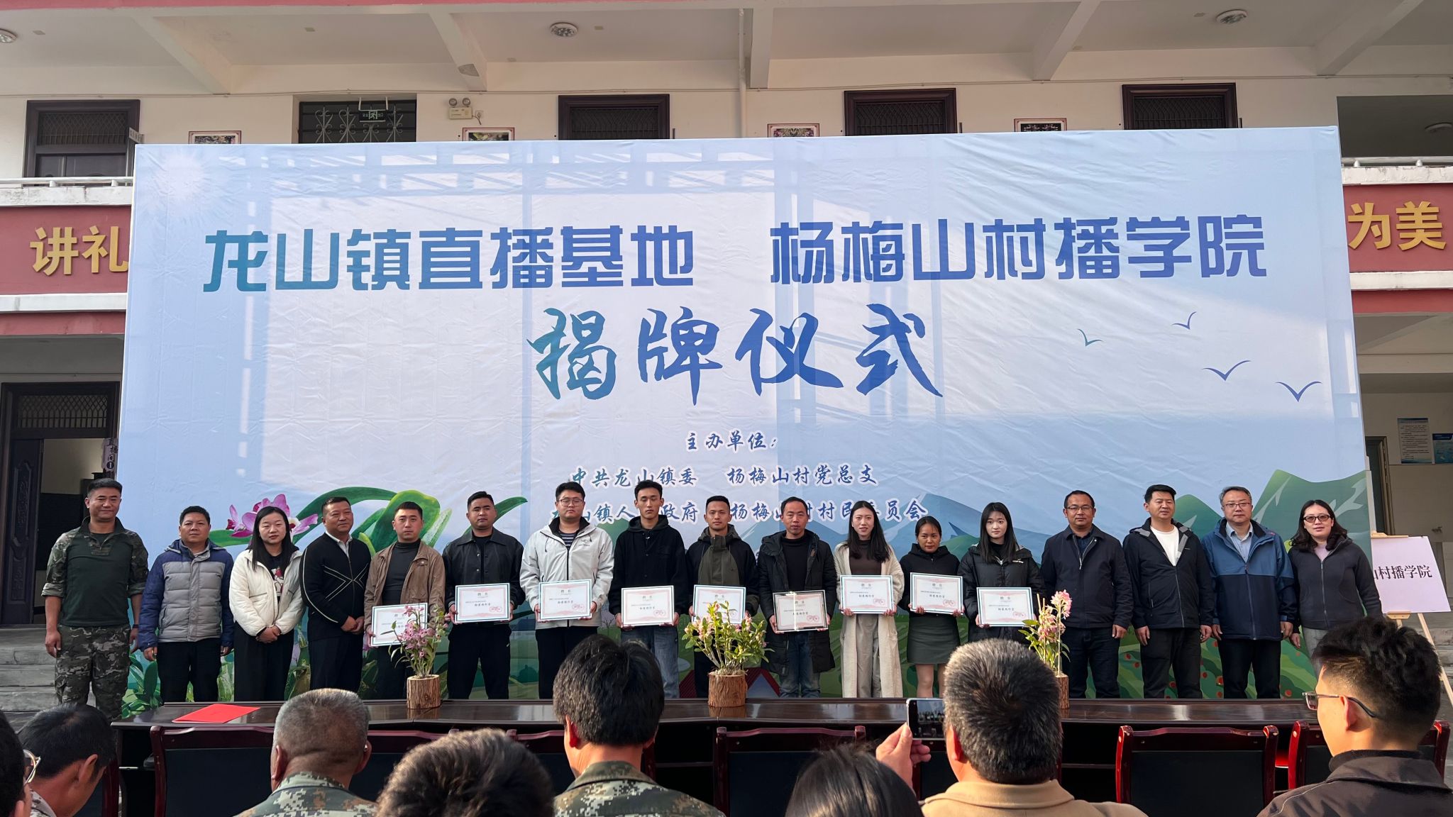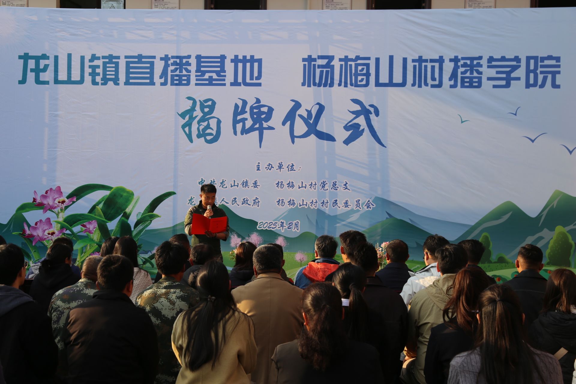 2月20日,“龙山镇直播基地”和“杨梅山村播学院”揭牌仪式在龙山镇杨梅山村顺利举行,标志着杨梅山村正式踏上“数字赋能乡村产业发展”的新征途。省农科院专家、县级部门领导、镇党委、政府相关领导、龙头企业负责人及主播代表汇聚于此,共同见证这一激动人心的历史性时刻,携手为乡村振兴事业凝聚磅礴力量。