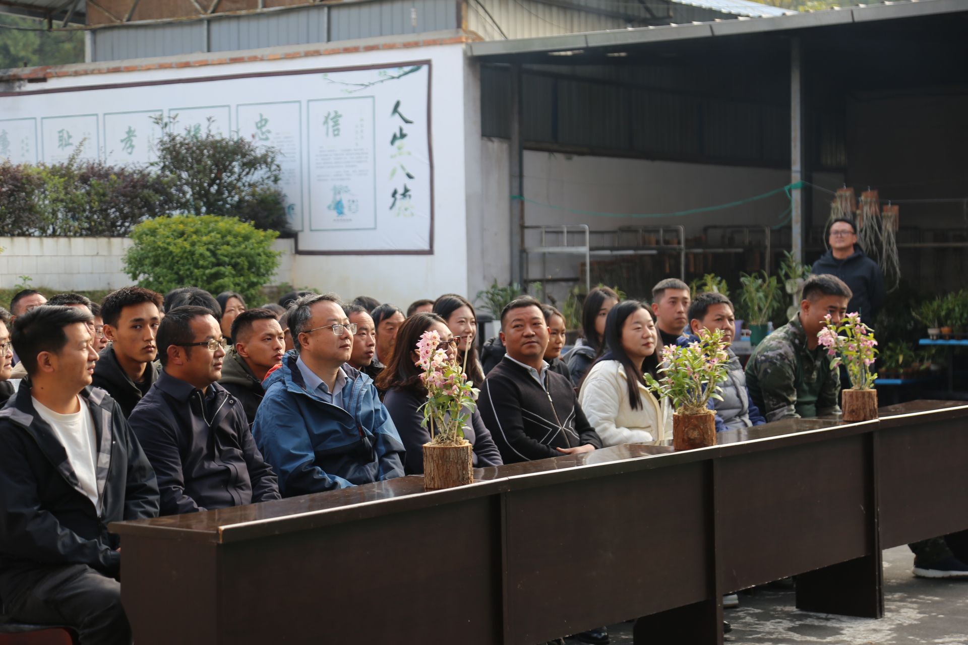 仪式上,省农科院花卉研究所专家李涵、省林业职业技术学院林学院刘强院长同龙山镇党委、政府主要领导上台,共同为“龙山镇直播基地”和“杨梅山村播学院”揭牌,在众人热烈的掌声中,两块牌匾上的帷幕徐徐揭开,开启了乡村产业数字化转型的希望之门。随后,杨梅山村党总支书记邵宗智、龙陵鑫农生物科技有限公司卢正运以及主播代表李年兴上台完成三方签约,标志着优秀主播力量正式融入村播学院发展体系。最后,龙山镇党委书记姚茂金为10名主播授予“助农推介官”荣誉称号并合影留念,这些主播将凭借专业技能与影响力,借助直播平台将杨梅山特色农产品推向更广阔市场,成为乡村振兴的有力宣传者与推动者。