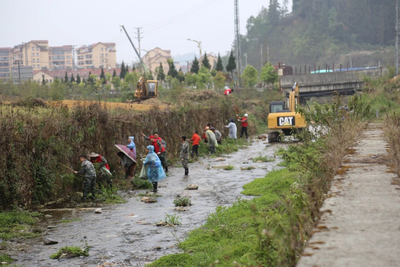 集中攻坚,提升河道“颜值”。活动中,全镇组织党员干部、保洁员、志愿者等120余人,出动挖掘机1台、运输车1辆,对河冲河大坪子村段、杨梅山村段河道开展“拉网式”清理,重点清除水面漂浮物、岸坡垃圾及淤泥杂草,累计清理河道1.8公里,清运垃圾杂物10余吨,整治河道淤堵点3处。