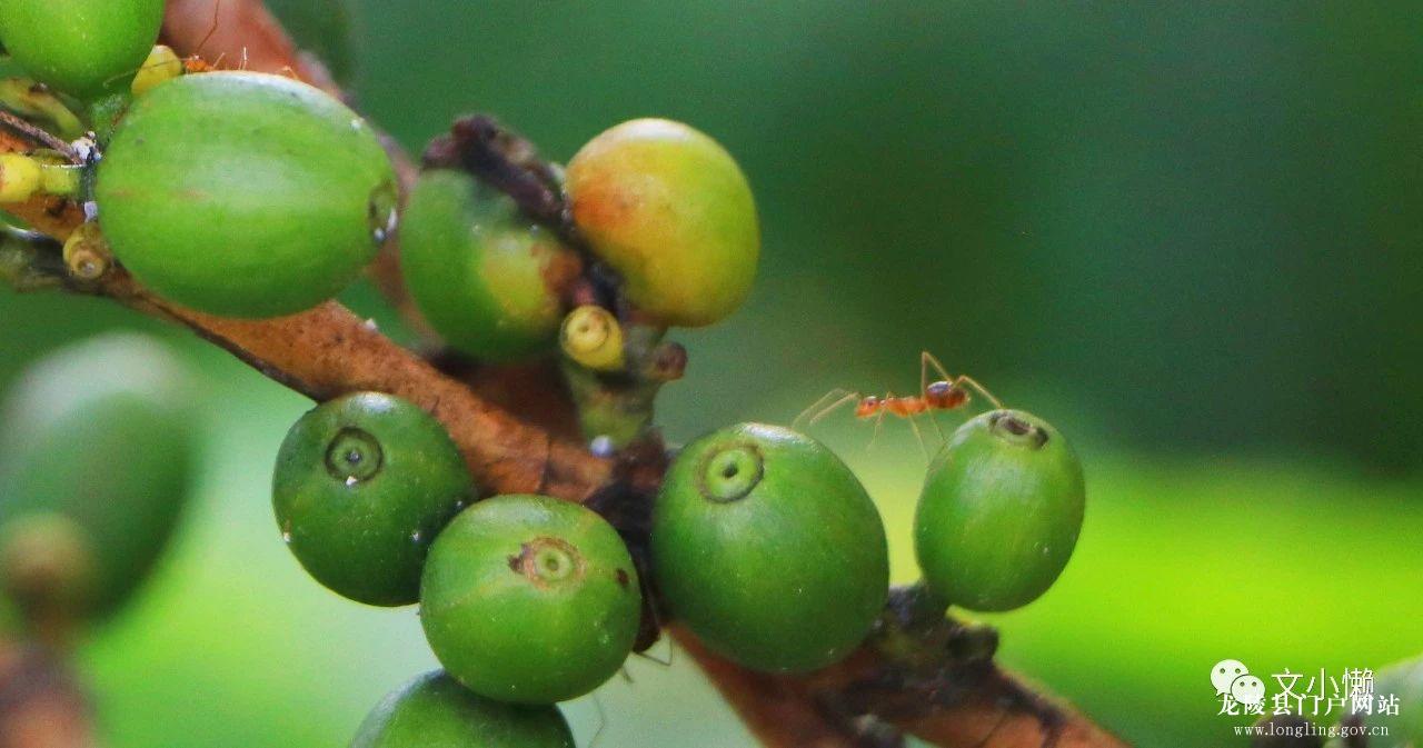 果农们为提高经济收入,不浪费自然资源,这片果园还套种了小粒咖啡,一颗颗咖啡豆像碧绿的宝石一般满满镶嵌在树枝上。