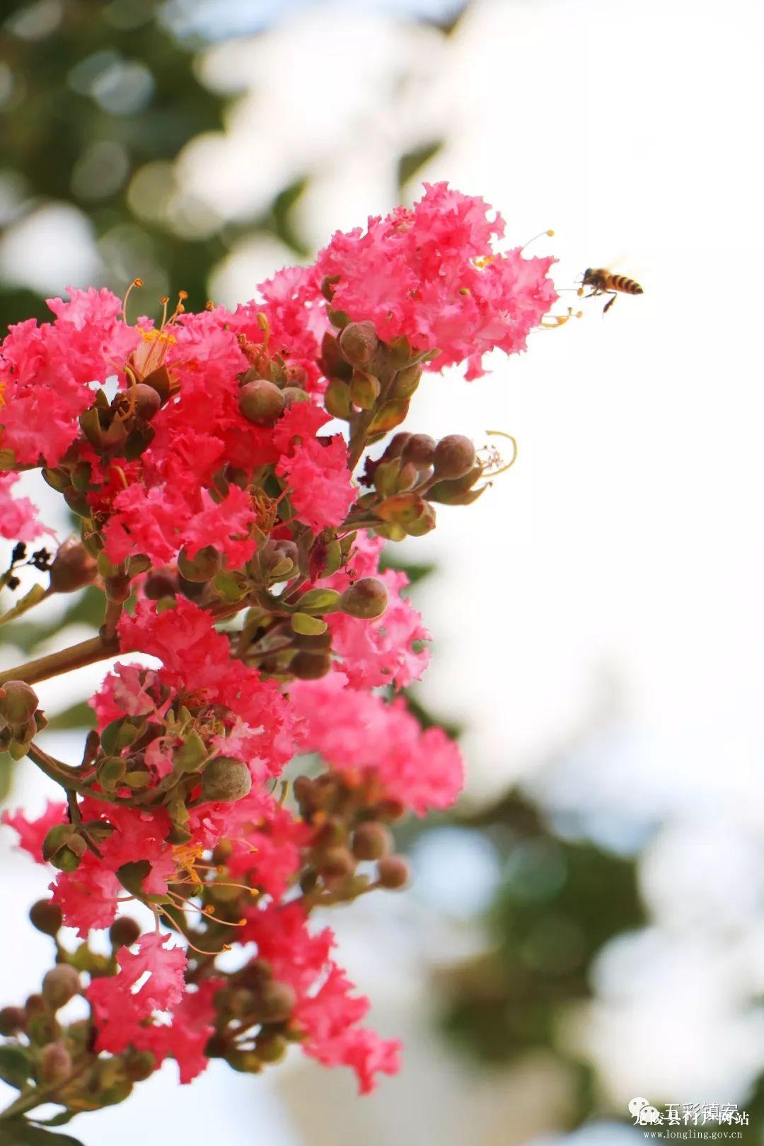 果园边上有几棵特别奇怪的“痒痒树”,当你抚摸它的树干时,像害羞的小姑娘,会抖动,像被抓痒痒一样。“痒痒树”其实就是紫薇花,它有“盛夏绿遮眼,此花红满堂”的赞语,虽不到花季,但已有花盛开,还有勤劳的小蜜蜂在采花蜜。