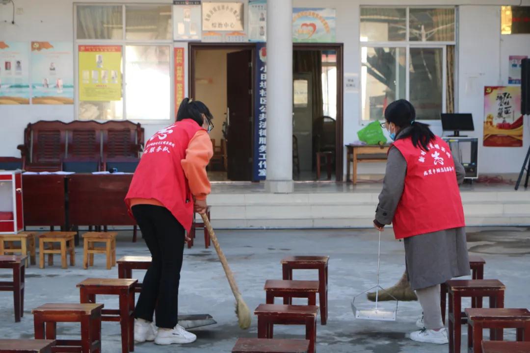 他们忙碌的身影出现在选举中心会场及分会场投票站的各个角落。有的协助布置会场、打扫卫生、消毒杀菌、调试音响;有的配合村医测量体温、向群众宣讲疫情防控知识;有的引导群众、维持会场秩序;有的为年龄大、不识字或者不会写字的群众解释填票说明……