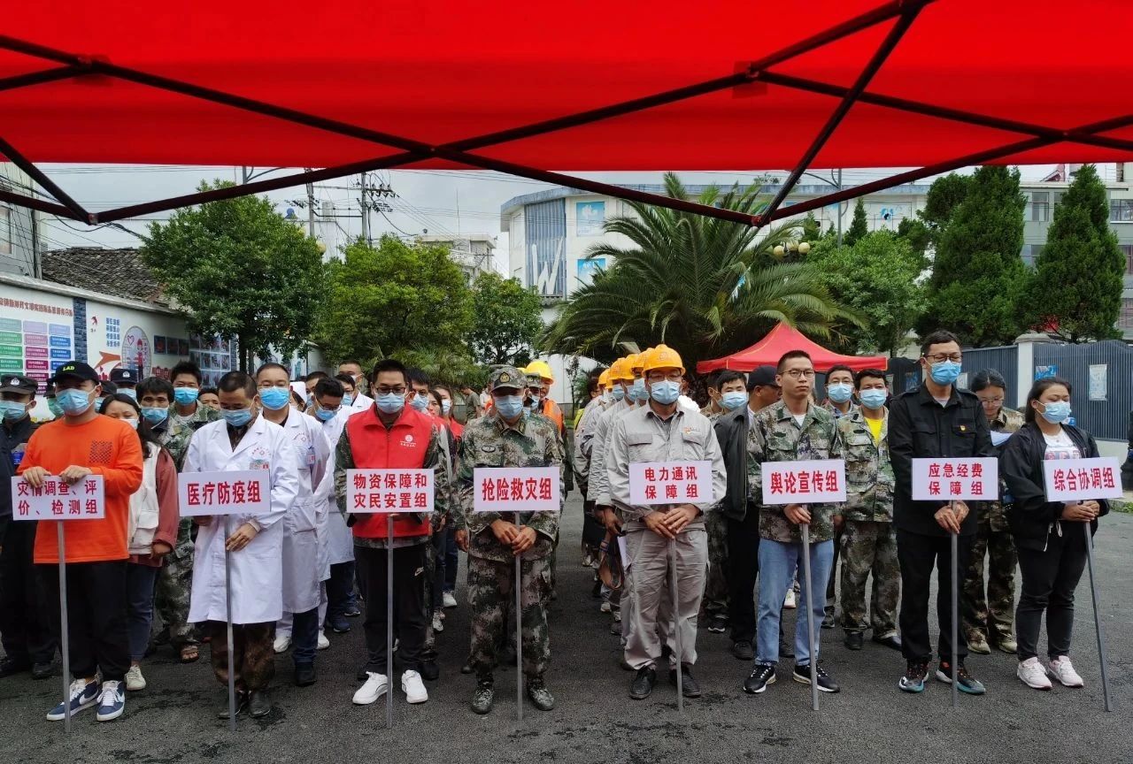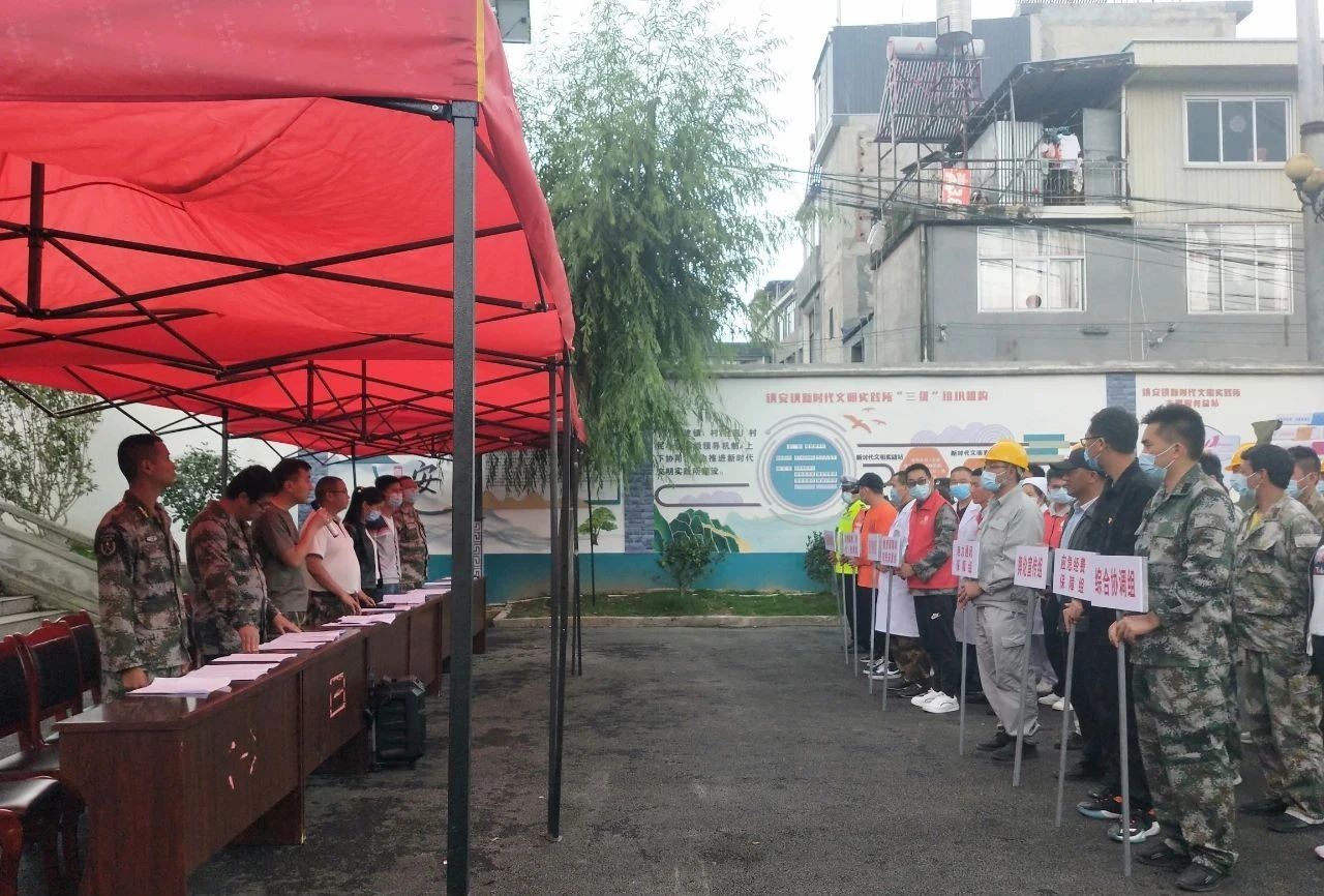 演练模拟情景:据云南省地震台网测定,2021年7月1日15时40分,在镇安镇八0八社区发生里氏5.6级地震,震源深度10公里,本次地震震中位于八0八社区和镇东村交界处。全镇震感明显,伴有滑坡和泥石流灾害发生,八0八水库有溃坝危险,据灾情初步调查,各村(社区)有不同程度的受灾,较为严重的是八0八社区小岩子、大滥坝、坡头、河边、烂澡塘组,并且通信全部中断,电力中断,道路中断,灾情还在进一步收集中。全镇立即召开防震减灾成员单位联席会议,成立抗震救灾指挥部。
