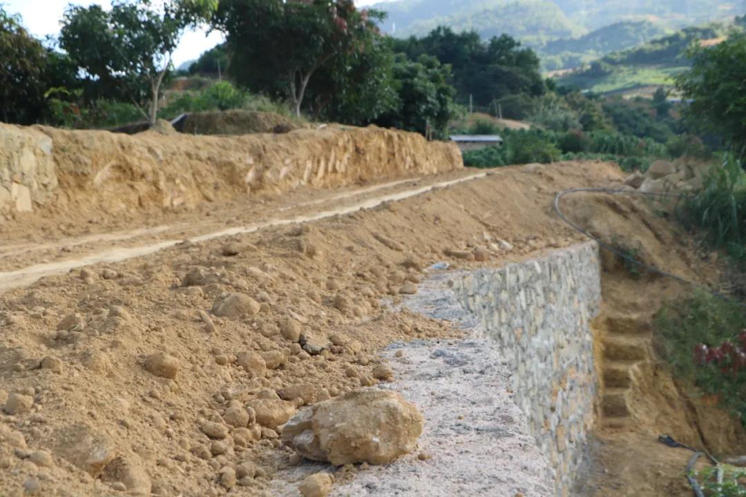 在外人眼里这只是一条普通的乡土道路,但对于户帕村来说这却是他们的产业振兴之路,是他们的经济命脉所在。蜿蜒的道路串联着300余亩咖啡、600余亩坚果和橄榄、700余亩甘蔗、4000余亩无筋豆、5000余亩芒果……认识到这条道路对当地群众的重要性和修建的必要性,县镇村在充分研判的基础上,多方筹集基础设施建设资金130万,迅速着手解决群众急难愁盼问题。