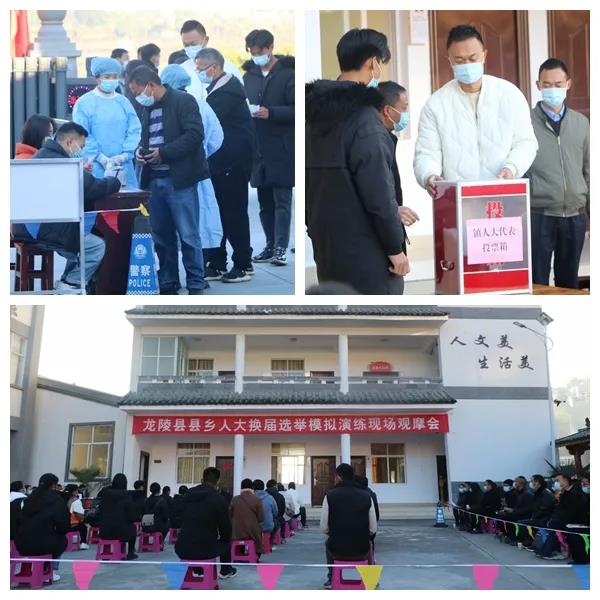 为进一步熟练掌握县乡两级人大代表换届流程及突发情况的指挥和处置能力,确保换届选举工作规范、有序、合法开展,确保县乡两级人大换届工作圆满成功,12月21日,龙陵县乡镇两级人大换届选举模拟演练现场会在镇安召开,县委常委、县委组织部部长刘成林、县人大常委会副主任黄永炳,县委组织部相关领导、10个乡镇人大主席、副书记、组织委员以及镇安镇镇村干部共计100余人参加。
