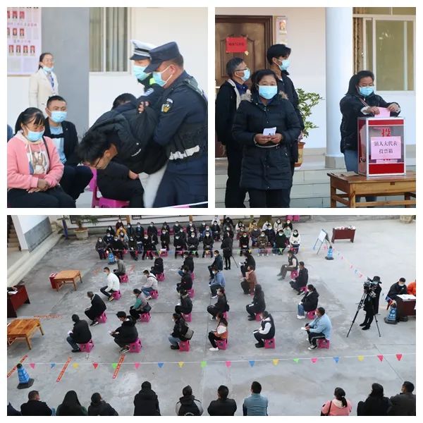模拟演练现场会分两个阶段进行,第一阶段在镇安镇小田坝社区举行县乡两级人大代表换届选举模拟演练。模拟演练现场严格按照人大换届选举要求,对投票选举前的注意事项进行详细的说明,现场设立选民登记处、发票处、投票处,同时结合疫情防控要求,对选民进行测量体温、佩戴口罩、检查两码。整个选举流程从查验选民证、选民入场、查验投票箱、拆封选票、领取选票、填写选票、庄严投票、唱票等环节依次进行演练,并逐项分析说明,让全体人员真正对选举流程和细节做到心中有数。过程中还加入了出现醉酒人员扰乱现场秩序的环节,对可能出现的特殊情况进行模拟,进一步加深工作人员的应急问题的处理能力。