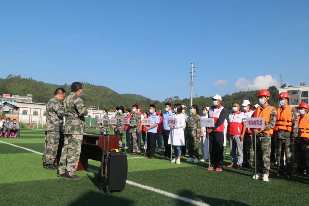 “报告!刚接到三岔河水库防汛值班人员电话,由于普降大暴雨,三岔河上游水位不断上涨,有漫堤险情,在水库下游劳作群众生命财产安全受到严重威胁,请指示!”5月31日,镇安镇2022年防汛减灾应急演练在险情报告中拉开序幕。