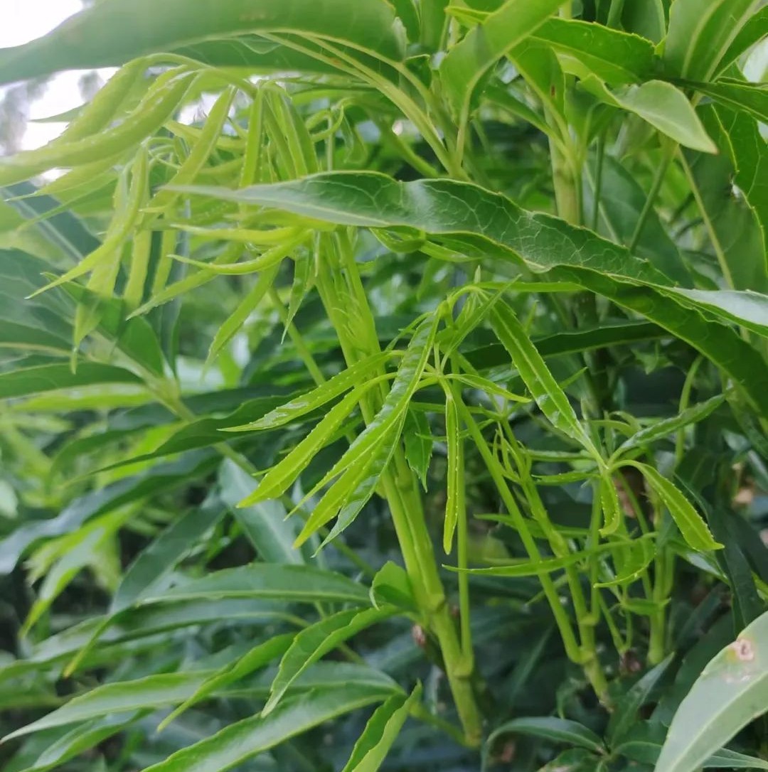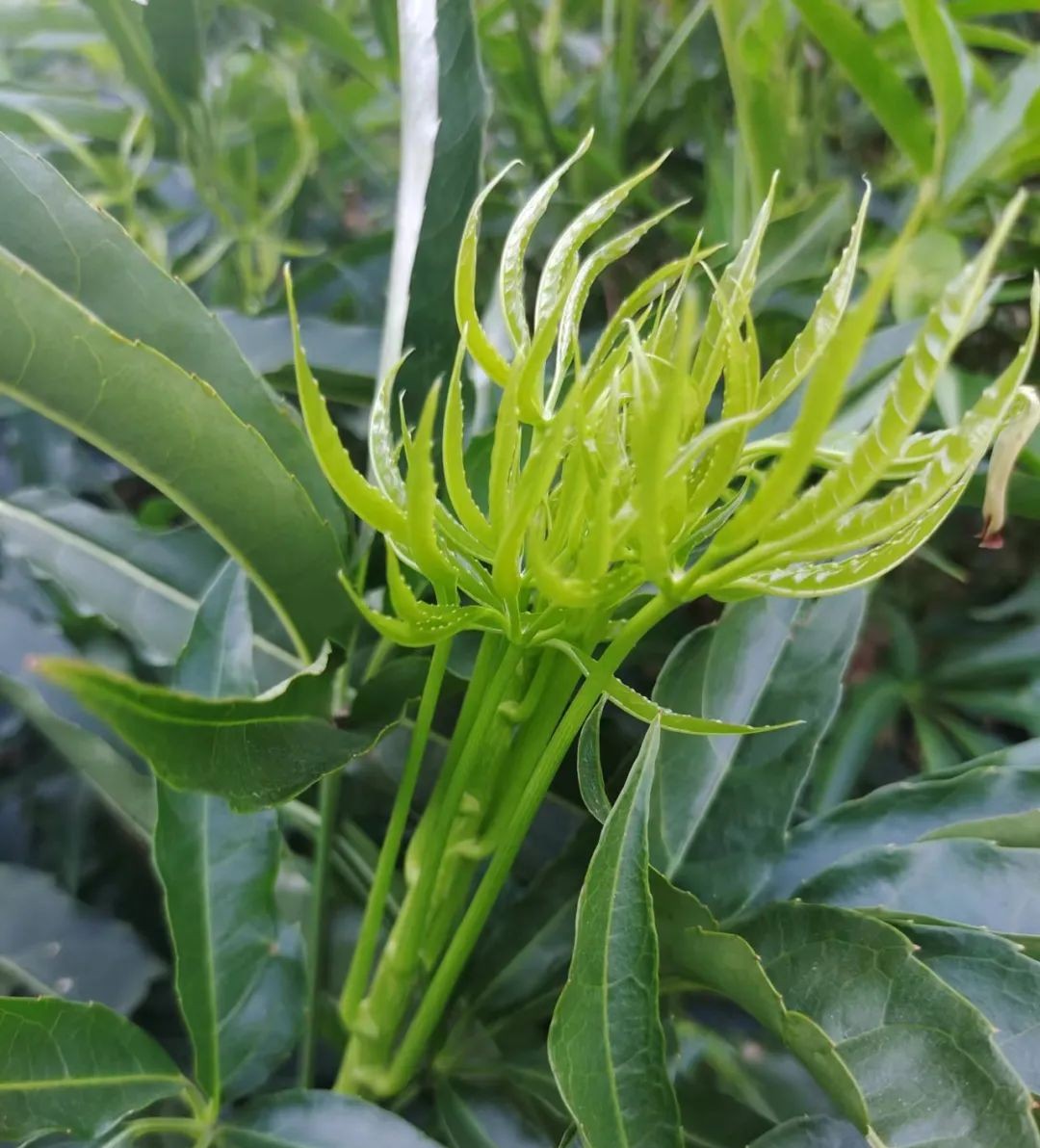 初生的“刷把菜”枝芽呈伞装,采摘后清洗干净,再简单的焯水后,就可以和水豆豉凉拌食用了,也可以用来煮汤,口感鲜嫩独具风味。