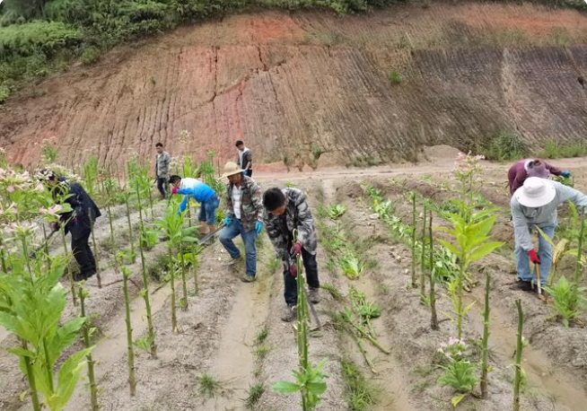 连日劳作以后,大家有的晒蜕了皮,有的闪了腰,有的小碰小擦受了伤,可大家坚定了节令效益的思想,觉得干才有希望,不干毫无希望。“只要有时间,随叫随到!”保洁员卢家玉说。“你们坚持干,我也付出一份力量。”常年多病的村民范奎昌表态。“只要大家爱吃,我们会加油,力争做得更好!”这个“我们”包括村委会副主任、监委会主任等,因为它们不但是工作好手,还是厨房好手。从村委会到种植地,最远的30多公里,而在这块没有插上党旗的劳动现场却党旗飘扬。种植期间,各村委会邀请农科专家现场指导,作了疏密得当、深耕浅种、浅盖深管等技术指导。深管主要是开花结果后鸟类蚕食的防范,目前,对于摸索、试种的各村来说,鸟类蚕食的防范,还在技术措施采集、采纳当中。