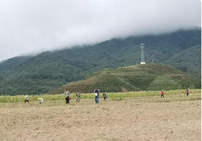 近年来,镇宝等相邻的几个村和大水沟村集体经济滞后而又难以突破。镇党委政府积极协调、划拨近300亩土地,由镇宝等四个村投入种植成本,试种荞麦和蚕豆,发展壮大集体经济。如何既做好行政事务,又搞好农业生产?8月底以来,镇宝等四个村统一思想、团结协作、分工合作。各村党总支书记、驻村第一书记、党员为先锋,非党村属人员、驻村工作队员和林管员、保洁员等组成“战斗”堡垒。各村根据实际情况分配、调剂人员,保证每天总上工人数在10人以上。不分男女、中青年,洒落田间就是力量,大家根据自己的使用习惯,镰刀、砍刀、锄头齐上阵,有的创新方法,徒手上阵依然有效。噼里啪啦、说说笑笑间,上一季的烟杆纷纷落地,漫天飞舞的烟花“归顺”沟渠——这类稍有肥力地块是要腾出来种植蚕豆的。在另一类“瘦弱”的地块,大家七手八脚卸种子、肥料,提水洒水,搅拌种子。你铲我提,你运我撒,你撒我盖。在覆盖种子的环节,微旋耕机成为最亮的“星星”,大家都争先恐后尝试“明星”的感觉,可大都因为体力不支败下阵来,留下的才是被公认的“机手”。广袤的土地看似一望无际,却禁不起全员一字排开、战天斗地的干劲。随着整体有序推进漫天“飞雪”“满天星”式的播撒,前期已完成170多亩荞麦种植,小小的荞麦正红着脸羞答答地陆续吐露新芽,陆续长大。