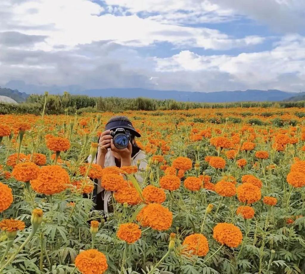 晨曦中的万寿菊,迎着第一缕阳光开始尽情地舒展每一片花瓣,犹如万千少女对镜梳妆,风姿绰约,尽显妖娆。 烈日下的万寿菊,芳香四溢,还没走近花田就嗅到空气中浓郁的菊香,让人忍不住一探究竟。夕阳下的万寿菊,伴随着阵阵馥郁清香更加艳丽,天空中的晚霞与地上的万寿菊花海交相辉映愈发迷人。