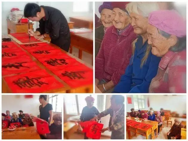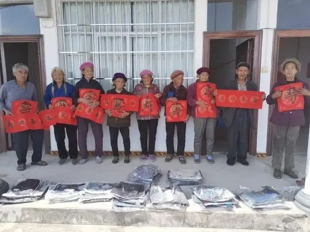 西瓜、服装和“九寿”。新一轮乡村振兴工作队驻村以来,积极倡导孝老爱亲传统美德,在每年敬老节这天,都召集老人座谈、慰问,结合当前的形势因势利导,让老人安享晚年,身教言传,引领乡村文明。今年敬老节刚好在国庆假期间,他们事先统计了80岁及其以上的老人作为全村老人代表共度佳节、同迎国庆。大家“围圆”而坐,村干部们递上西瓜——这是敬老节前爱心人士赠送给村委会不舍得吃故意留下的西瓜,给老人们发放了来自上海爱心人士赠送的崭新服装,驻村工作队员用不同字体给老人们书写并赠送了9个“寿”字及“寿比南山”“福如东海”的条幅,寓意敬老事业久久为功、久久长远,“敬”在心中,久久不见久久见。