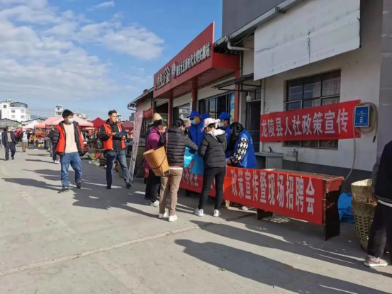 县、乡两级“康乃馨”志愿服务队在镇安镇贸市场利用镇安街赶集日、临近春节外出务工人员返乡潮,宣传农村劳动力转移就业、城乡居民养老保险、城乡居民医疗保险企业职工养老保险、灵活就业人员参保、工伤保险、农民工工资支付条例、退役军人保障法等政策,发放宣传单500余份,并耐心地“面对面”为群众答疑解惑。